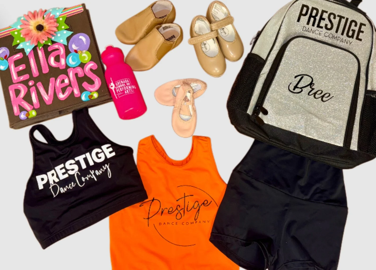 Logo wear items are available with the Grenada School of Performing Arts or Prestige Dance Company logo.